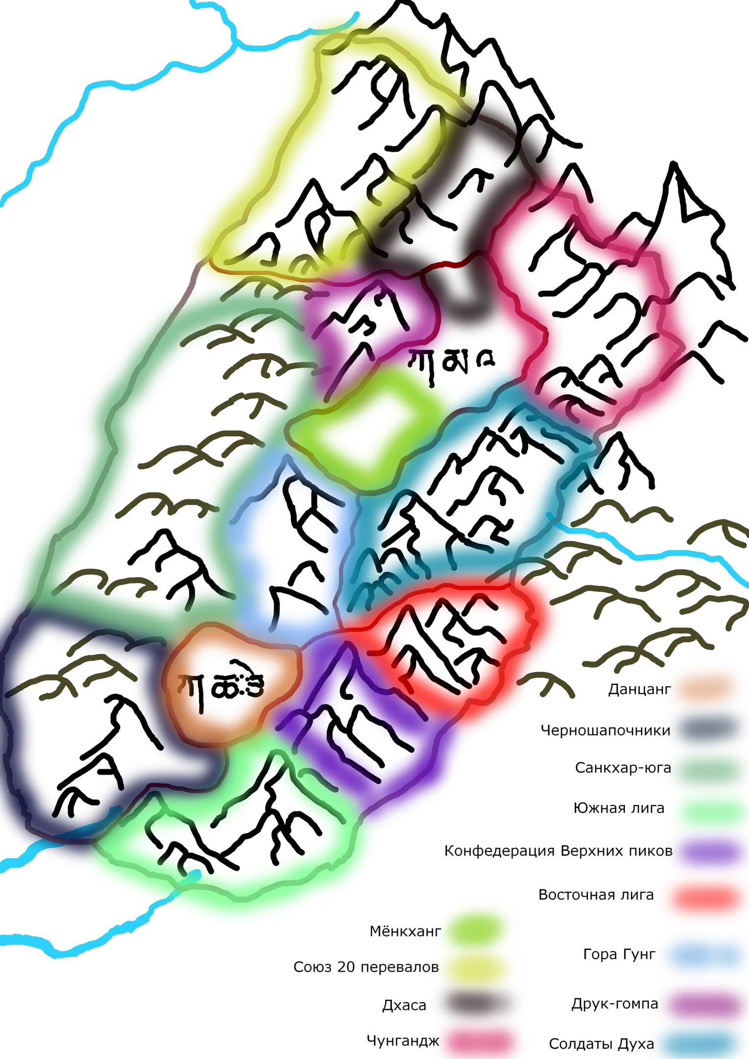 Север же тем временем заливался кровью. Демоны и горные разбойники теснили отряды Мёнкханга на юг. Пути из Салонга в Пунгку и Рцонг отрезал Шалкот, захвативший ключевые горные перевалы. А грозный Дхаса столкнулся со своими западными соседями и, так и не пробившись через мощные дзонги, обратил свой взор на Друк-гомпа, с обитателями которого нашел много общего, но рассорился и осадил монастырь. Но на тыл осаждающих стали нападать санкхарцы и демон отступил в Рцонг. Из опасений возвращения демона, с юга была вызвана значительная часть армии монастыря Санкхар-юга. Воины смогли с помощью магии Воздуха обрушить часть стены, но из-за сведений о наступлении черношапочников, армия вернулась. В отместку безумные обитатели Друк-гомпы заняли перевалы, ведущие через Северный Гунг в Салонг. А в Данцанге Ринчен уже подписывал союзный договор с Конфедерацией Верхних пиков.
