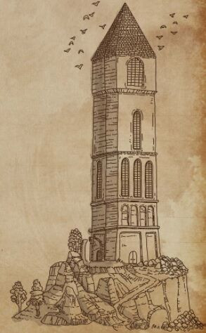 There have been many rumors floating around town about the tall tower at the center of Leilon. It is said to have been built long before there was a town. In addition to being nearly 100 feet tall itself, it stands atop a crag-like hill about 40 feet in height. The town garrison has agreed to assist in its repair in trade for using it as a sort of watchtower.