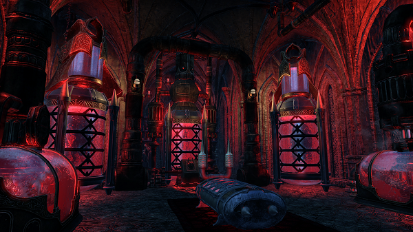 The fight occurs in the old ore refining smelter at the center of the mine, its blast furnace once powered by an enormous bellows, pumped by the flow of water through a canal cut into the cave floor. The canal is now dry after the earthquakes shifted the flows of water.