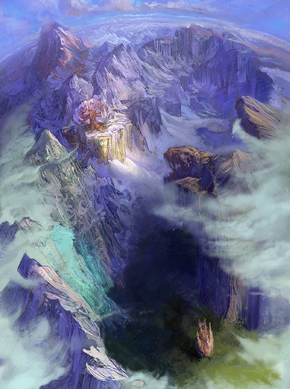 A long mountain range running west from the Silver Marches in the north of the Savage Frontier to the Sea of Moving Ice. These dramatic mountains are perpetually ice-covered and host a number of glaciers, creating an imposing barrier between "civilization" and the frozen wastes to the north, were tribes of Uthgardt barbarians and hordes of orcs range.