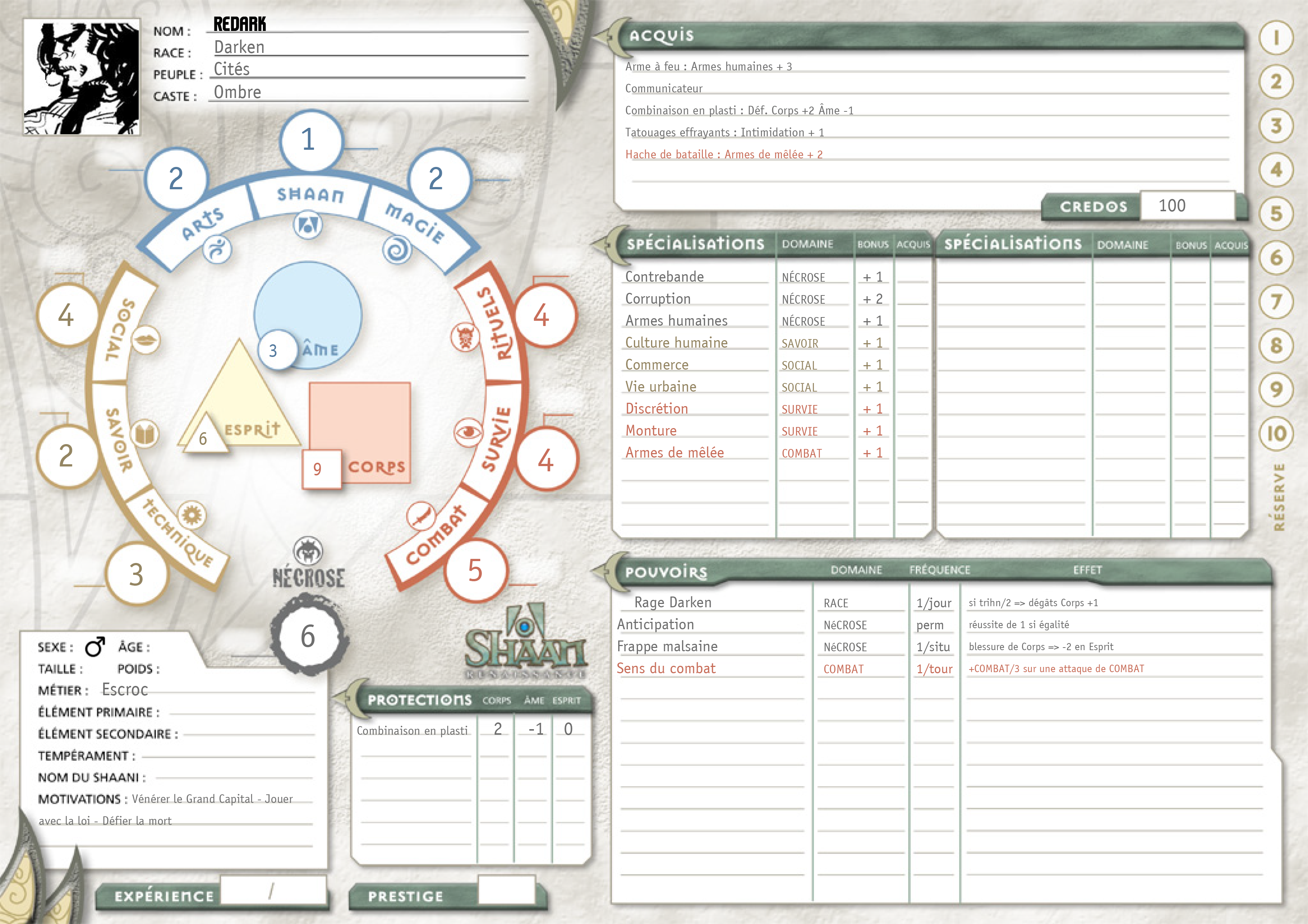 Recruté par Aalsa Ariq, il lui est fidèle tant que les crédos suivent. Il lui obéit au doigt et a l'œil, mais ne calcule pas trop le reste de l'équipe.