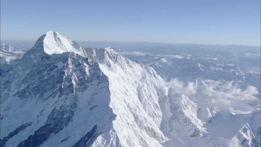 Tall mountains, covered with snow cover the view as far as the eye can see. Standing at possibly 32 thousand feet, they tower over the landscape. As we get closer, the peeks look imposing. Jagged edges and ravines pierce through rocky surfaces with odd angles that cause a constant hallow ring through the air. Getting closer still, small specs disturb what looks like a sheer white wall of ice. The specs move slowly, like ants, uninvited, disturbing the nature of this place.