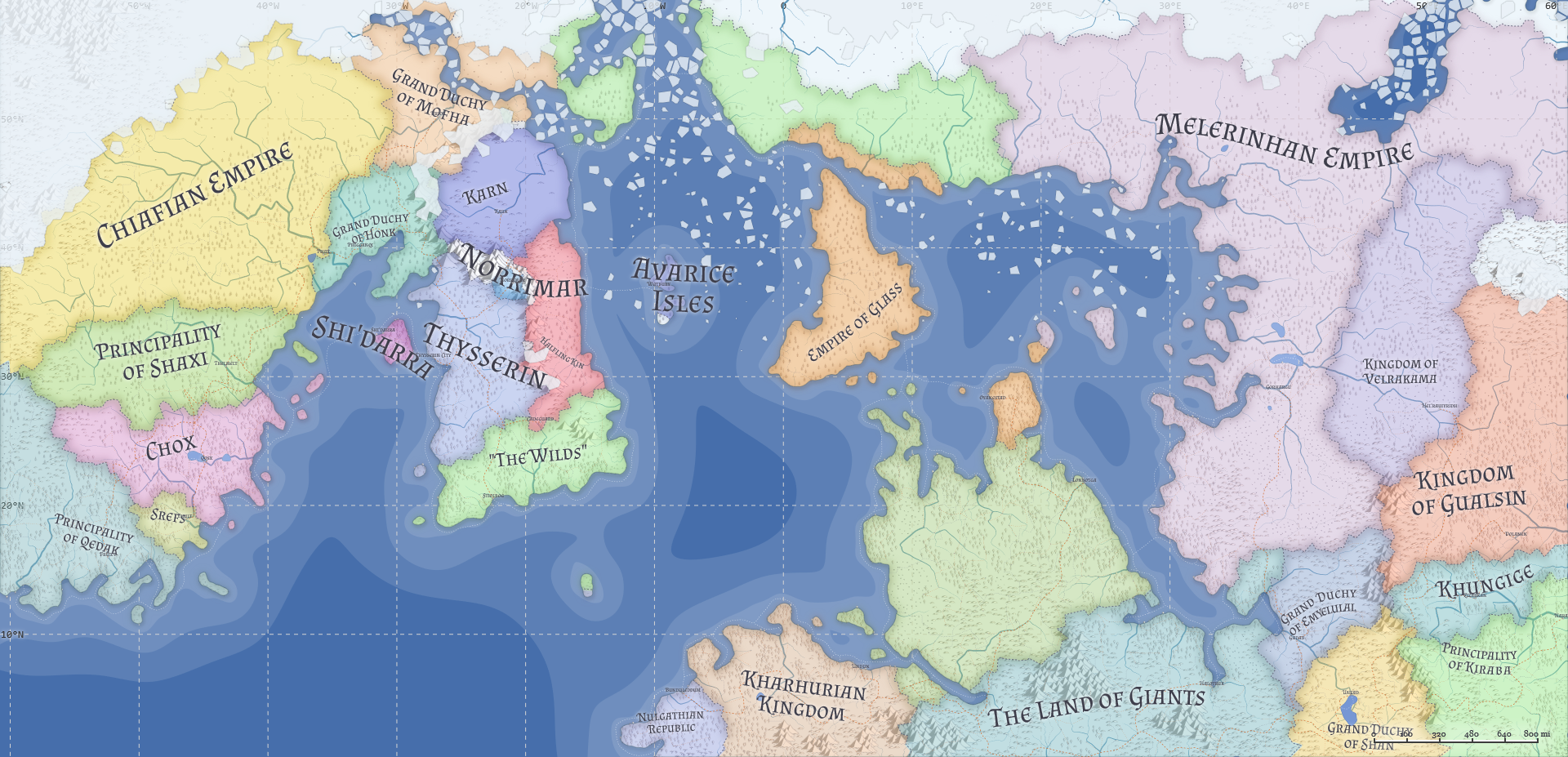 Current image has generated names from Azgaar's Fantasy Map Generator, many of which will be replaced over time.