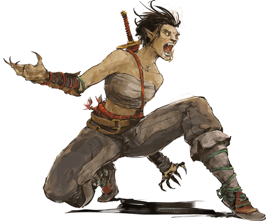 The traits of the beast within affect a shifter’s appearance as well. A swiftstride shifter may have catlike eyes and delicate build, while a beasthide shifter might be a massive brute built like a bear. While a shifter’s appearance might remind an onlooker of an animal, they remain clearly identifiable as shifters even when at their most feral.