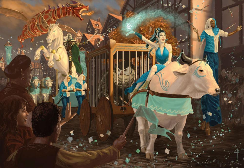 “Ladies and Gentlemen! See the four-faced firbolg! See the tiefling with seven tails! See the halfling staring back and forth into the infinite void! See the elephant-faced lady—two for one! Indeed, I am your host, Zardoz Zord! My goal in this world is only to vacate the people’s mind. And twice now, towards the sky, the men on giant fireflies— the flying bugbear brothers, yes! Stardust, ladies and gents, free of charge! Candy with the taste of the heavens! Enjoy the show!”