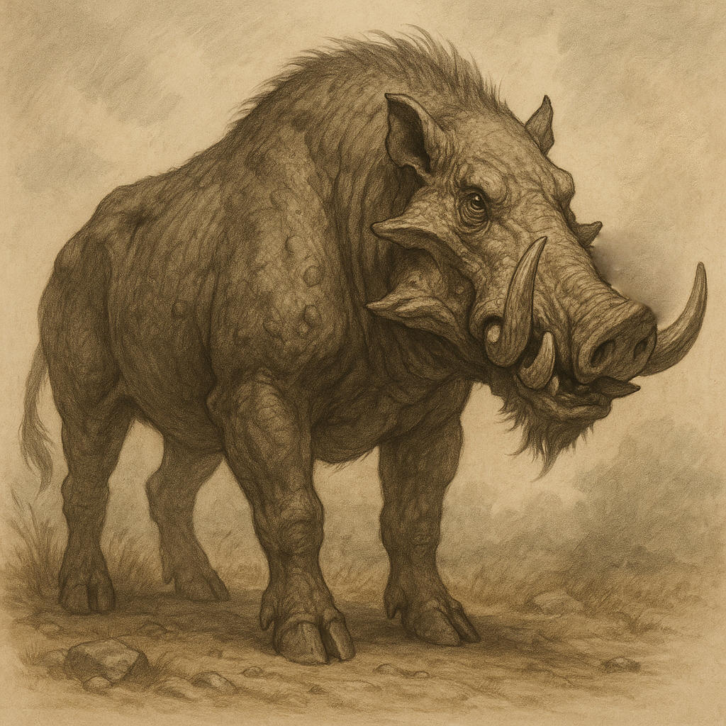 Wartusks are formidable, thick-skinned quadrupeds native to the rugged lowlands and foothills of the Bifrost Isles. Resembling massive, tusked boar-like beasts with thick barrel chests, they are descended from an ancient and savage lineage of megafauna—creatures often referred to in myth as "the spawn of stone and thunder."