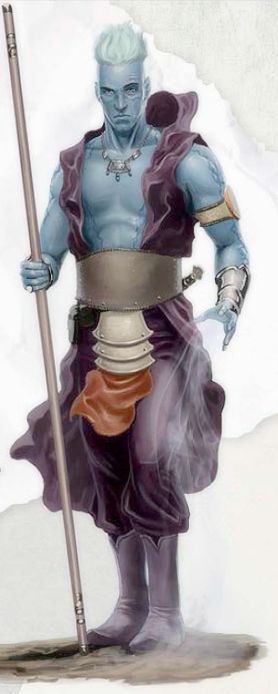 He wields a staff made out of a narwhal horn that separates into two blades.