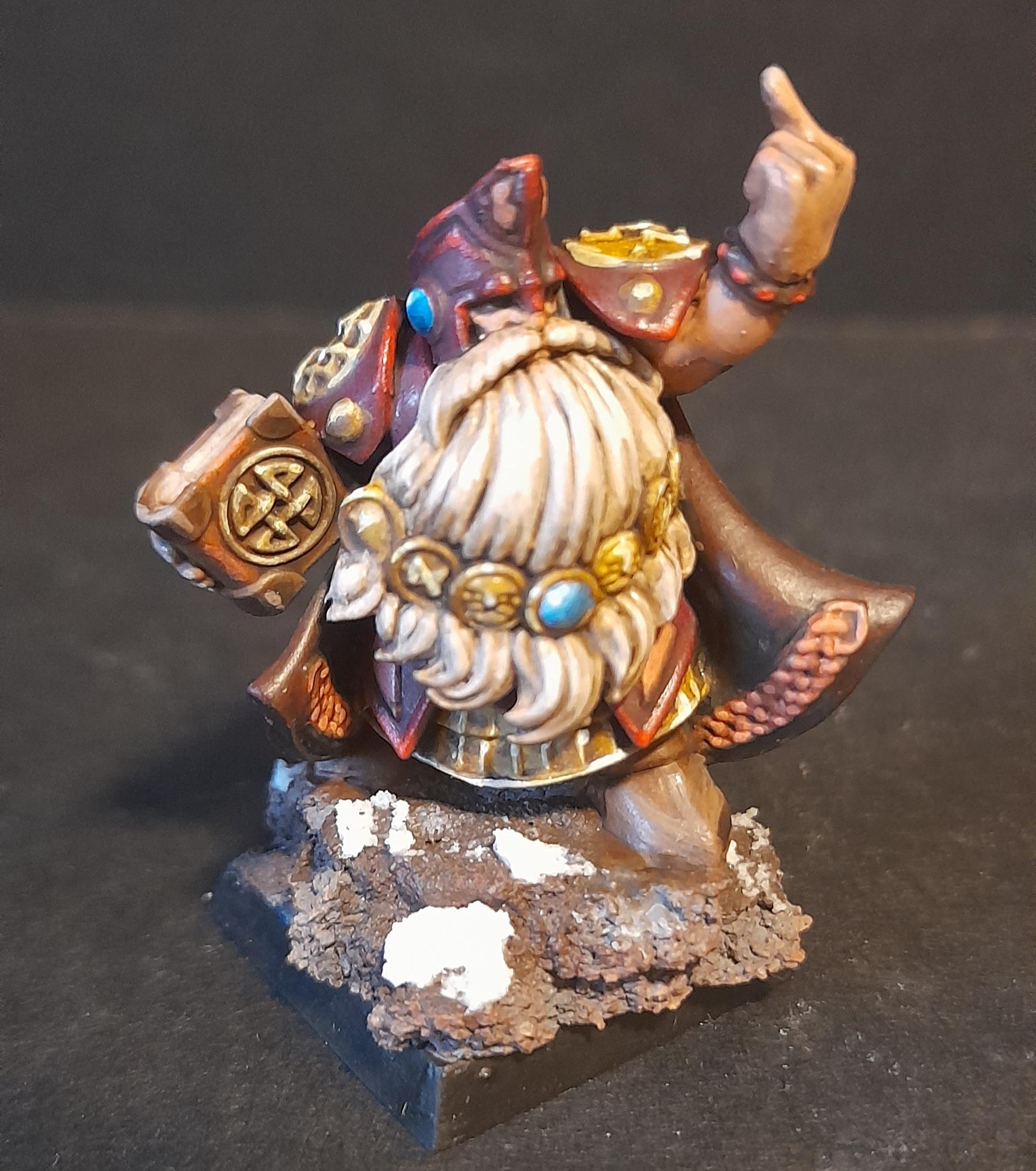 Und tatsächlich treffen sie schon bald darauf endlich auf den augenscheinlichen Anführer der Ratten, ein widerwärtiger Zauberer, beschützt von zwei gepanzerten Leibwachen und einer Horde der üblichen Clanratten. Noch sind die Abenteurer unbemerkt, denn der Magier ist damit beschäftigt, giftig grüne Warpblitze gegen einen gleissend blauen Schutzschild zu schleudern, welcher eine Gruppe Zwerge auf der anderen Seite einer Brücke beschützt. Bei genauerer Beobachtung erspäht Tarhiel den Runenschmied, welcher die schützende Barriere aufrecht erhält, und es ist klar, dass er nicht mehr lange durchhalten wird. Hans hat genug gesehen und kündigt seine Anwesenheit mit einem lodernden Feuerball an, welcher den Zorn Sigmars direkt in die Mitte der Rattenhorde trägt. Der Kampf verläuft anfänglich gut - die Clanratten bieten keine grosse Herausforderung für unsere Kämpfer, und die Versuche des Skavenzauberers, seine Warpblitze gegen die Gruppe zu richten, werden von ein paar wohlplatzierten Pfeilen Tarhiel's abgefangen. Doch zeigt sich dann, wieso die Skaven nicht zu unterschätzen sind, als der Magier hinter dem Schutz seiner Leibwachen eine pestilente Giftwolke herbeibeschwört, welche der Gruppe heftig zusetzt, und Hans zu Boden gehen lässt. Der Kampf steht auf Messer's Schneide, als Gorm die Gelegenheit ergreift, seinen Slayerschwur zu erfüllen, indem er sich mitsamt dem Skavenzauberer von der Brücke in den Abgrund stürzt. Die restlichen Ratten sind im Nu beseitigt, und Rollo vergiesst ein paar Freudentränen über den heldenhaften Tod seines Freundes.