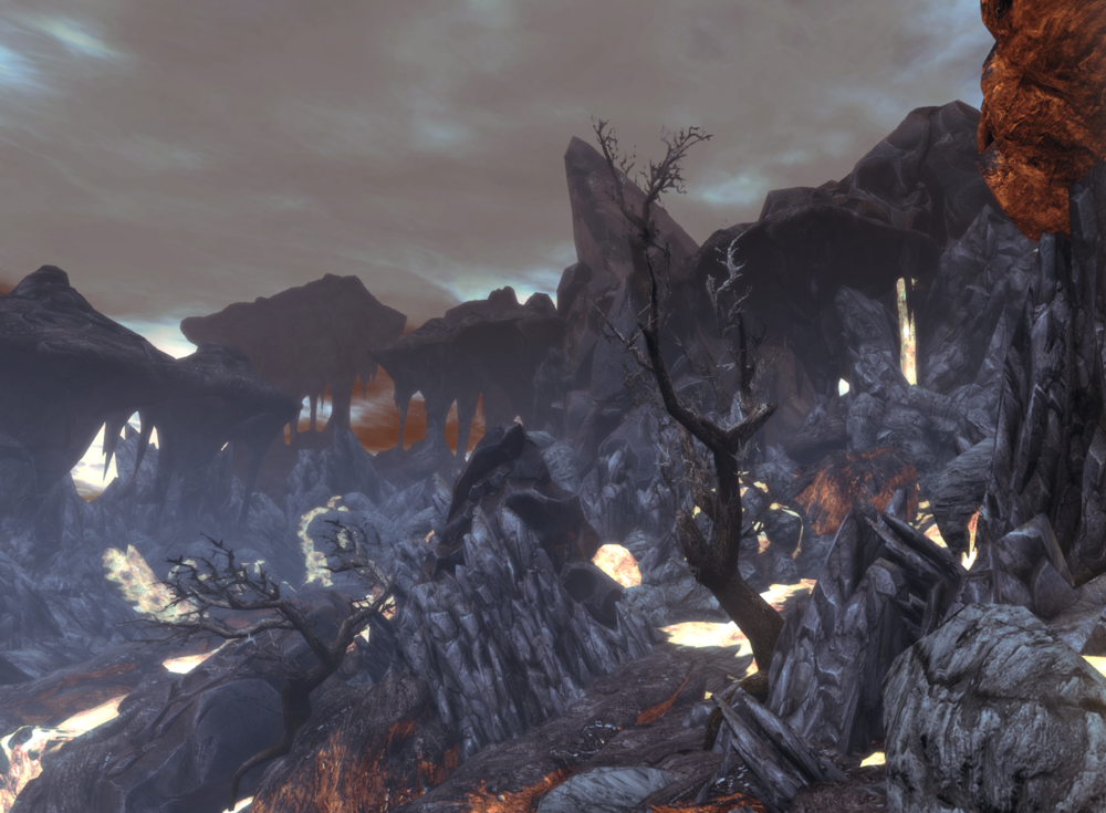 After its eruption, Mount Hotenow looked like a set of serrated teeth many described as a "door to the Nine Hells" (or the Elemental Chaos, according to others). A river made of pure elemental fire follows a serpentine path throughout Hotenow's interior and underneath the surrounding mountains and hills of the Crags.