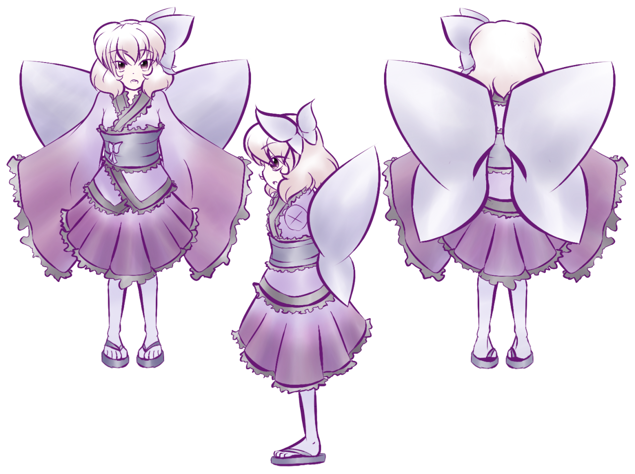 As a Zashiki-warashi type spirit, she's effectively a minor luck deity on top of literally being a dead child. She will boost the luck of the homes she inhabits, but in return that luck will decline should she ever decide to leave. Her luck manifests in the form of spectral butterflies, the color of which determines the additional saturation of fortune being added or taken to her surrounding environment.