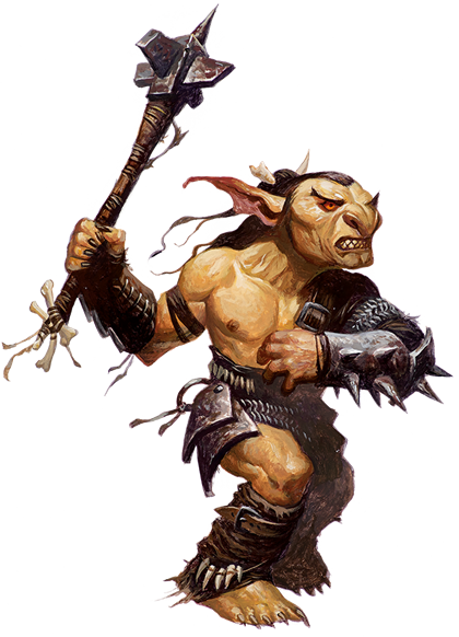 Goblins occupy an uneasy place in a dangerous world, and they react by lashing out at any creatures they believe they can bully. Cunning in battle and cruel in victory, goblins are fawning and servile in defeat, just as in their own society lower castes must scrape before those of greater status and as goblin tribes bow before other goblinoids.