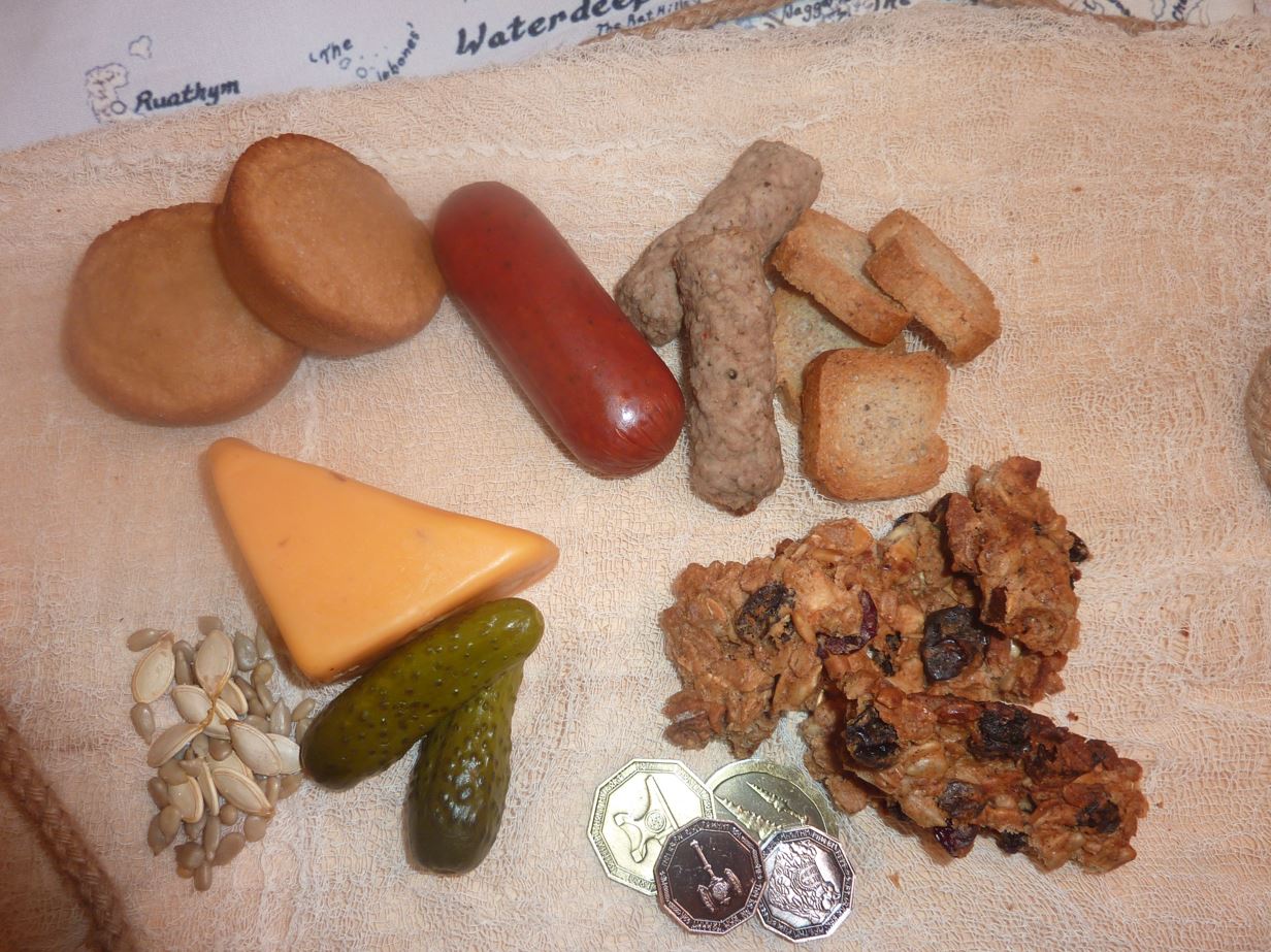 Rations consist of dry foods suitable for extended travel, including jerky, dried fruit, hardtack, and nuts.