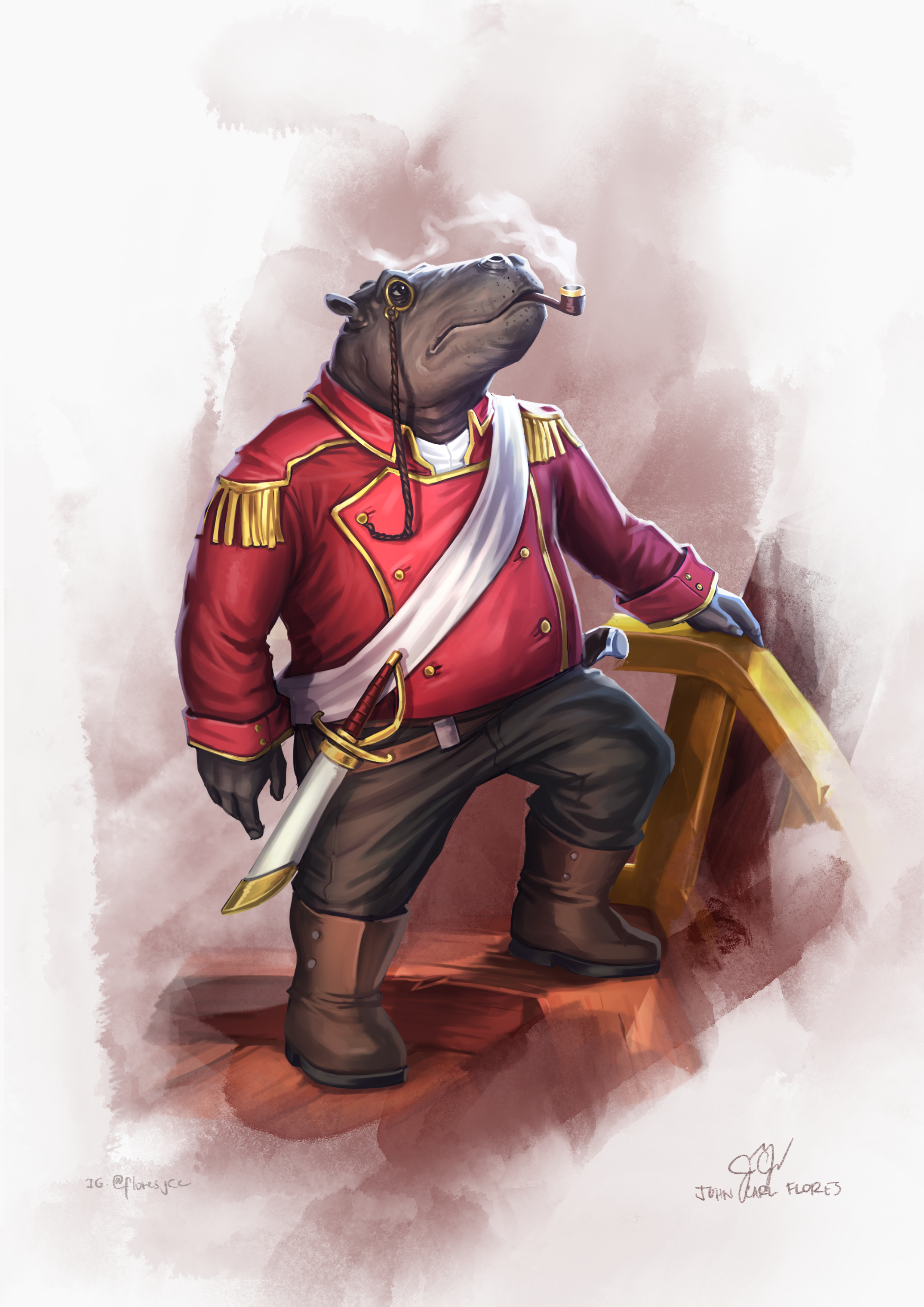 Giff on Terenas are believed to have originated from a far-off world, possibly through a portal or magical experiment gone wrong. They are humanoid creatures with a resemblance to hippopotamuses and are known for their incredible marksmanship and love for weapons. Despite their imposing size and appearance, they are generally friendly and cooperative, valuing loyalty and honor above all else. Many Giff have formed mercenary groups that are hired by various factions in conflicts throughout the world.