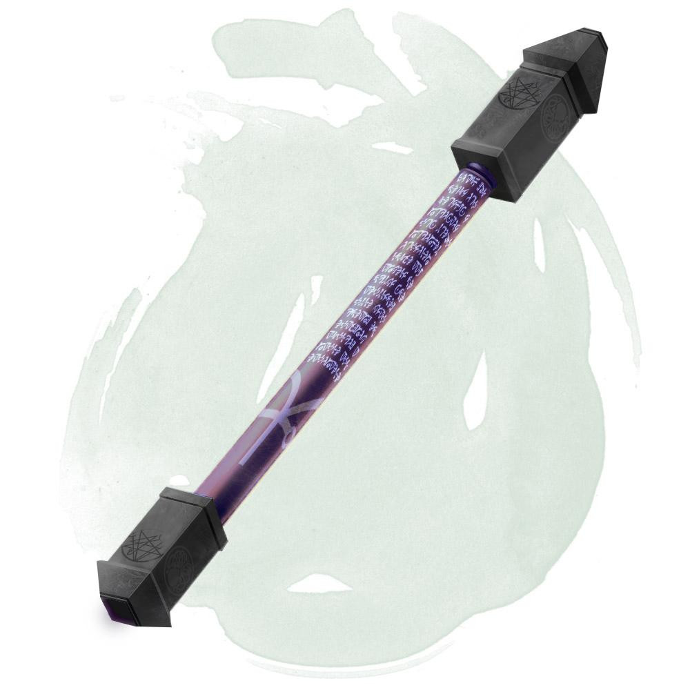 Crafted from the darkest teak and repeatedly stained until it holds a lustrous black shine, this rod is a sculpted, 18-inch-long baton.