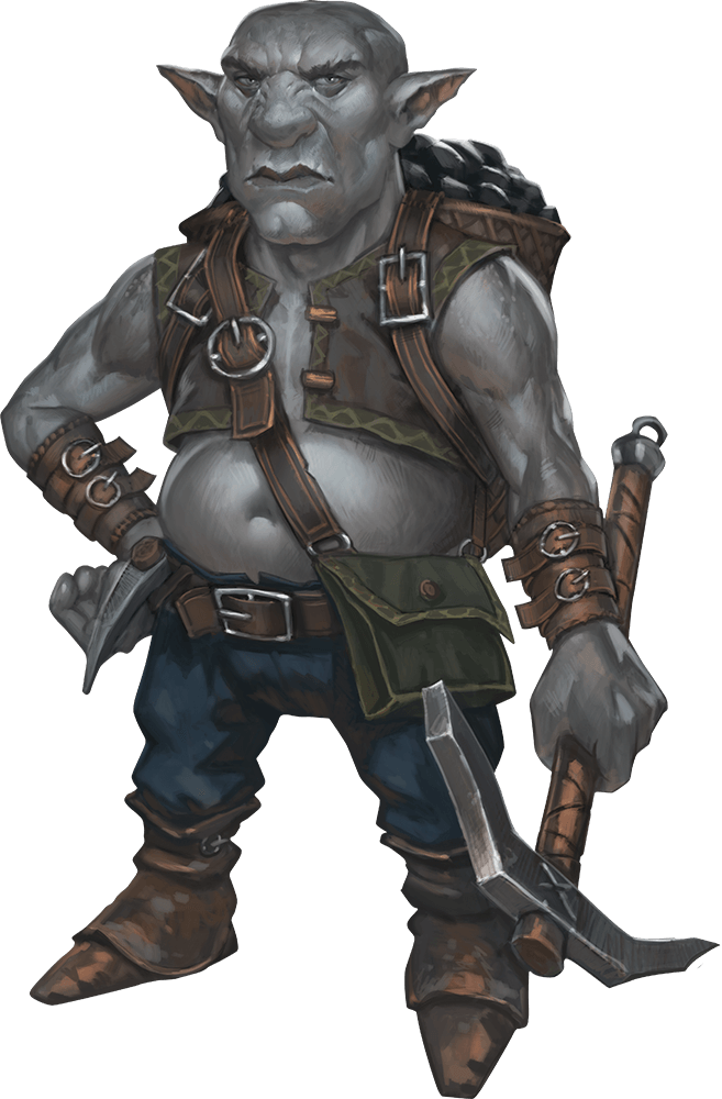 Svirfneblin seem more like creatures of stone than flesh. Their leathery skin is usually a gray, brown, or dun hue that acts as a natural camouflage with the rock around them. Their bodies are gnarled with hard muscle or fat, and they are heavier than their small stature suggests; svirfneblin often weigh 100 pounds or more but rarely stand much more than 3 feet tall.
