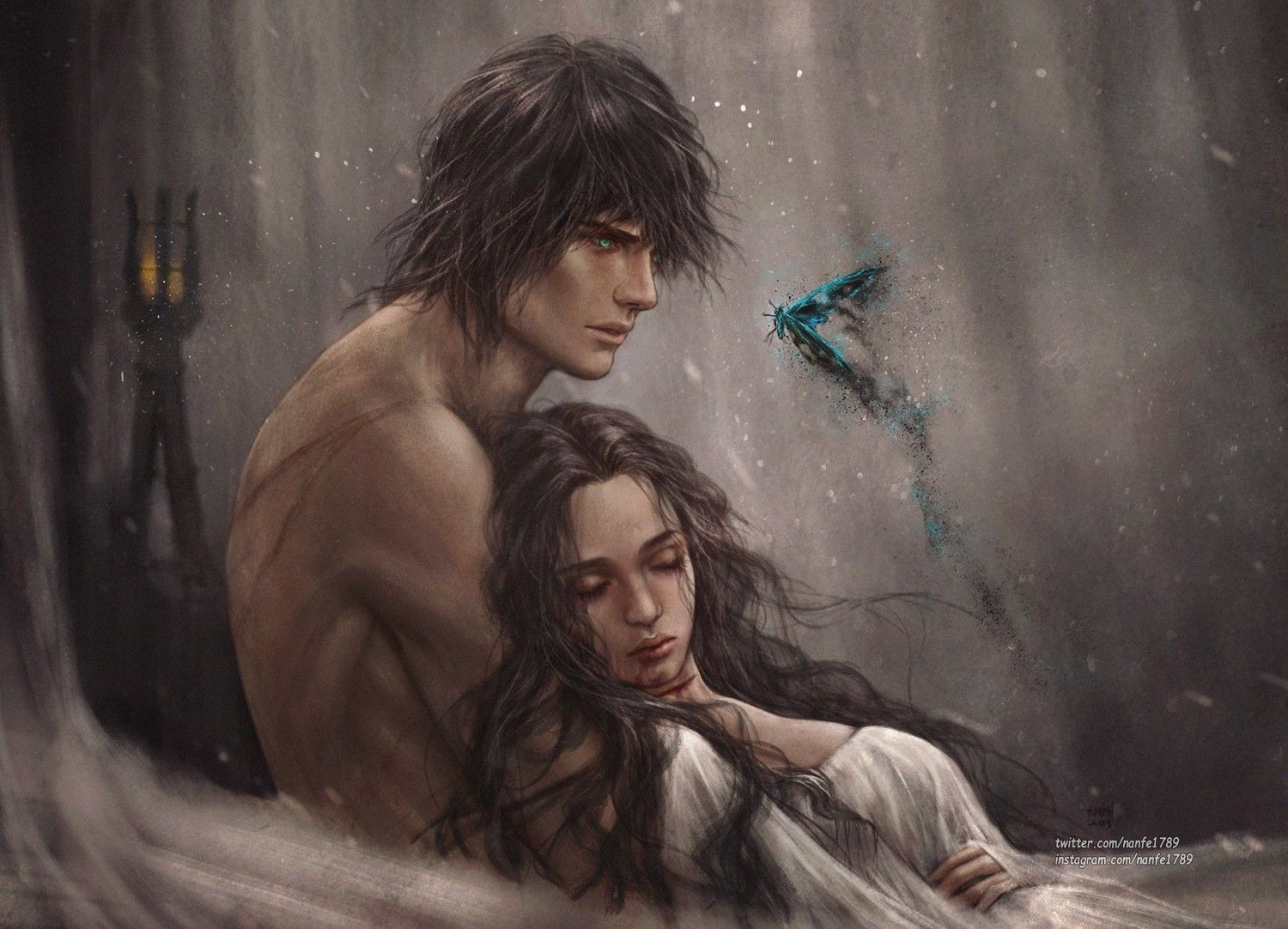 They cuddled up together and closed their eyes. They fell asleep in each other’s arms, she dreaming of peace and freedom, and Deuxdal dreaming of fire, burning, and change.