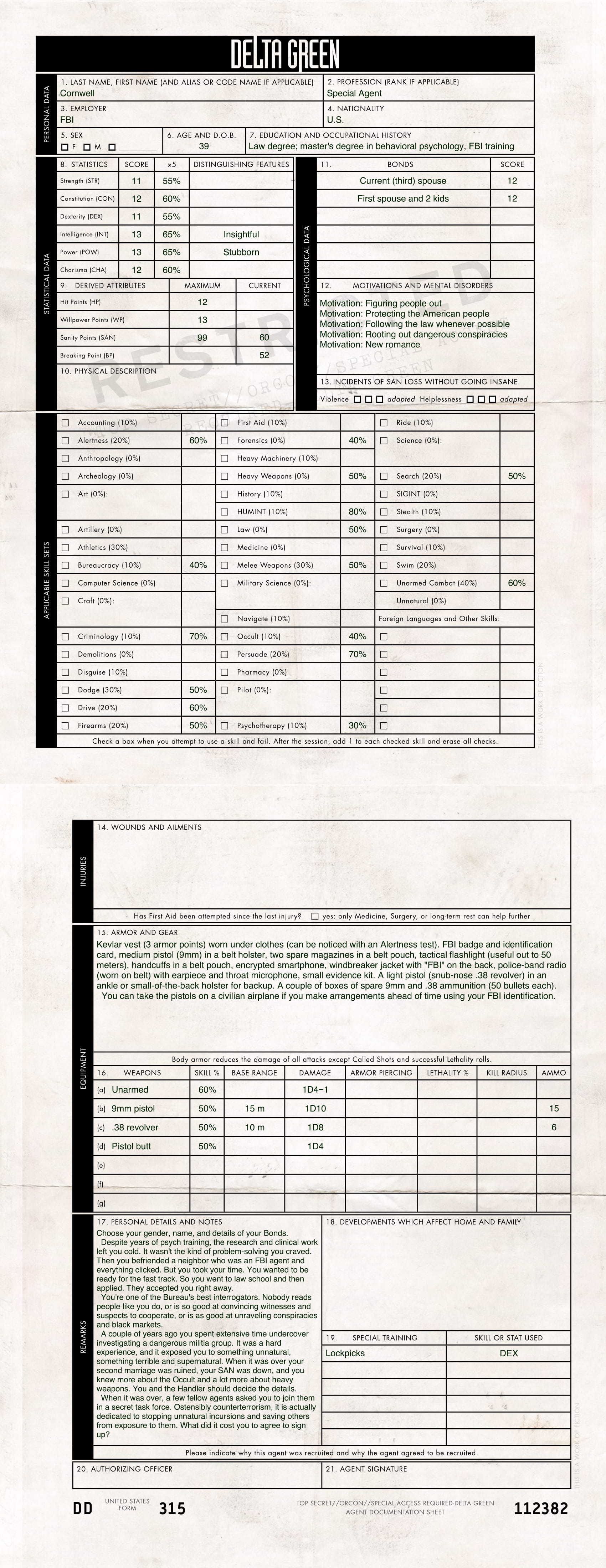 Bonus skills: Criminology, Dodge, HUMINT, Law, Melee Weapons, Occult, Persuade, Psychotherapy.
