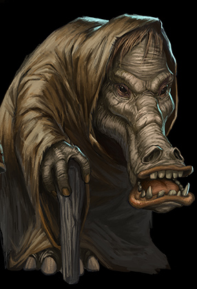 Os Chevin são de construção sólida e difíceis de ignorar, sendo mais alto que os humanos e quase duas vezes mais largo. Eles têm rostos grandes e coriáceos e longos e proeminentes focinhos. Sua pele cinza impermeável se estende sobre membros grossos e musculosos, e seu olfato é refinado o suficiente para identificar uma caixa de água colorida em uma remessa de azul reforço. Outrora uma espécie de caçadores, os Chevin agora são famosos por seus créditos de caça, uma tarefa ou pelos quais possuem habilidades únicas.