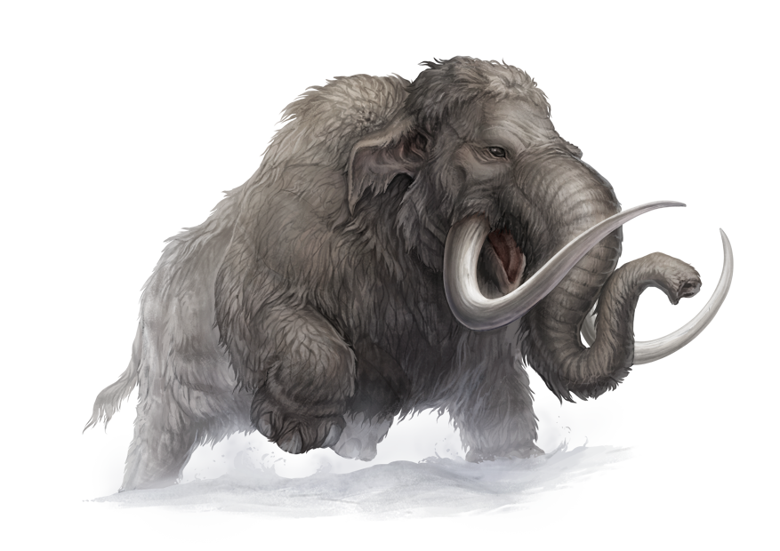 manner. Instead of the lance-like tusks of their relatives, mammoths sport elongated, curved tusks that they