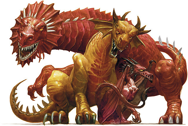 Drakes are the lesser, wingless kin of dragons. Unlike their majestique cousins, drakes are generally smaller, feral in nature, and have shorter life spans. They display a range of physical characteristics, with most bearing some resemblance to their chromatic counterparts while others boasting unique features. They are categorized into three age groups: young drakes, comparable in size to mules; adult drakes, akin to full-sized crocodiles in scale; and ancient drakes, capable of growing to mammoth-like proportions. Drakes are commonly encountered in packs, typically consisting of a majority of young ones led by one adult alpha or two mated adults. While not as awe-inspiring as dragons, drakes should not be underestimated, as their cunning and lethal set of abilities can still make them formidable adversaries. Thus, they are often sought after by giants and humanoids, who recognize their value and train them as guards or mounts.