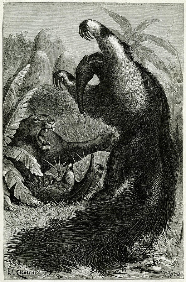 Recognized by it's skunk like large bushy tail, distinctive strip on their sides, and large claws, giant anteaters are one of the largest of modern anteaters known. Preferring a terrestrial lifestyle over other anteaters being arboreal, giant anteaters are around 5 to 6 feet long and can weigh from 60 to 110 pounds. Normally shy and peaceful, giant anteaters will defend themselves with surprising strength and ferocity.
