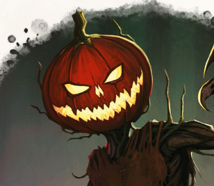 a carved and lit pumpkin. It haunts the edges of