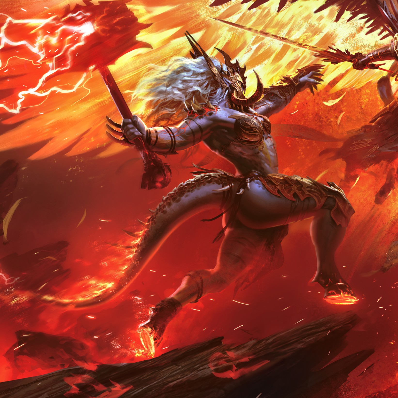 Flames of Chaos. As part of an Attack action, you can choose to forgo one of your attacks to hurl a bolt of iridescent fire at a creature within 100 feet of you as a ranged spell attack. On a hit, the target takes 4d6 fire damage and becomes engulfed in chaotic flames until the end of your next turn. If the creature takes damage from one of your Demonic Surges while covered in these flames, the flames disappear, and that surge deals an additional 1d12 damage as it draws energy from the fires.