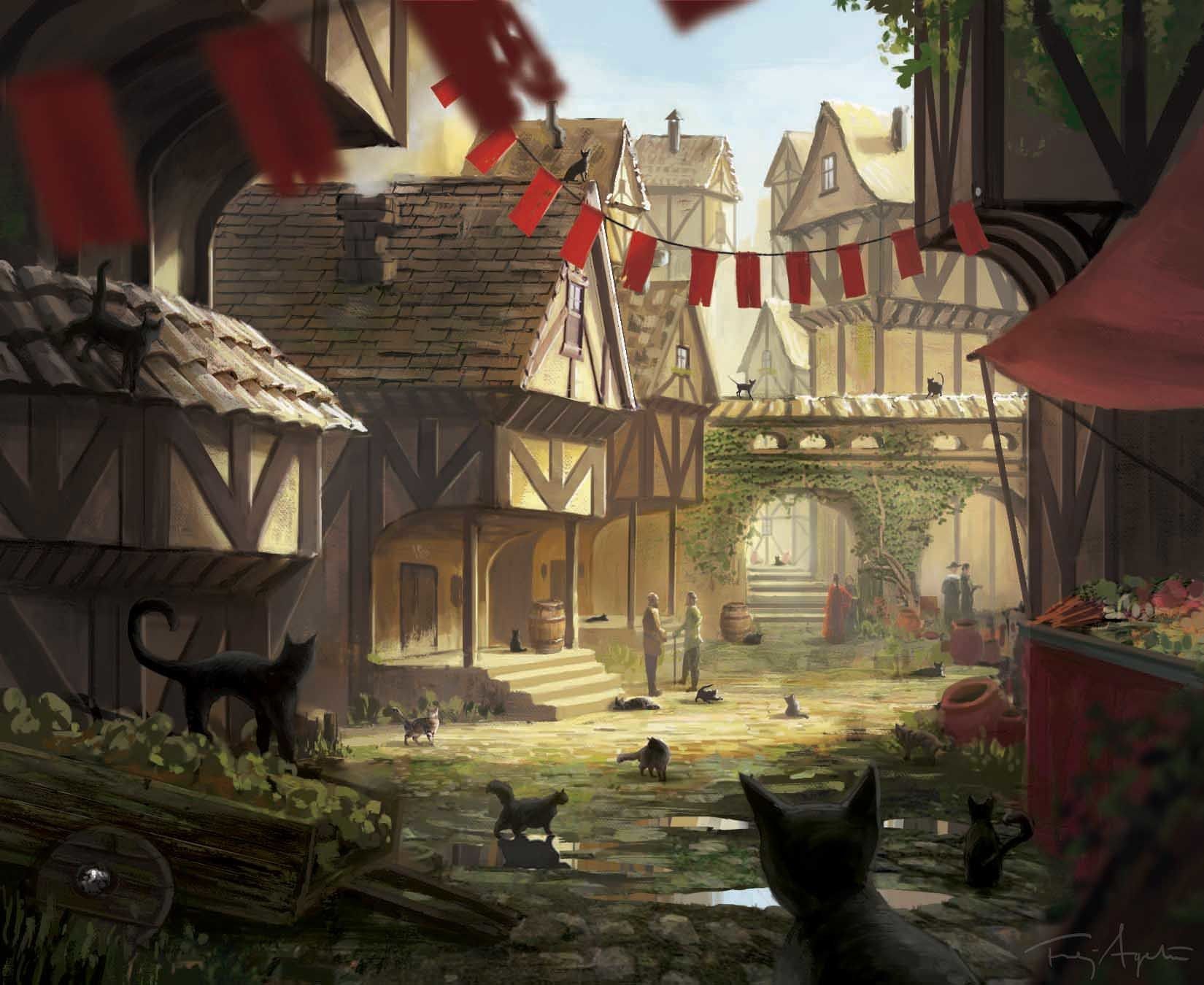 Installée entre la Porte et les Halles, l’auberge de l’Épée attire une clientèle constituée de commerçants, de voyageurs, de travailleurs, d’artisans et d’aventuriers. Les halfelins du village s’y rendent aussi régulièrement. La bâtisse est vieillissante, mais propre et bien tenue. L’auberge s’est diversifiée et propose nombre de services en dehors du gite et du couvert : écurie, maréchal-ferrant, coursier, etc. Par ailleurs, des professionnels dépourvus de boutique s’y installent occasionnellement pour vendre leurs services aux clients, moyennant un loyer : scribe, coiffeur, barbier, etc.