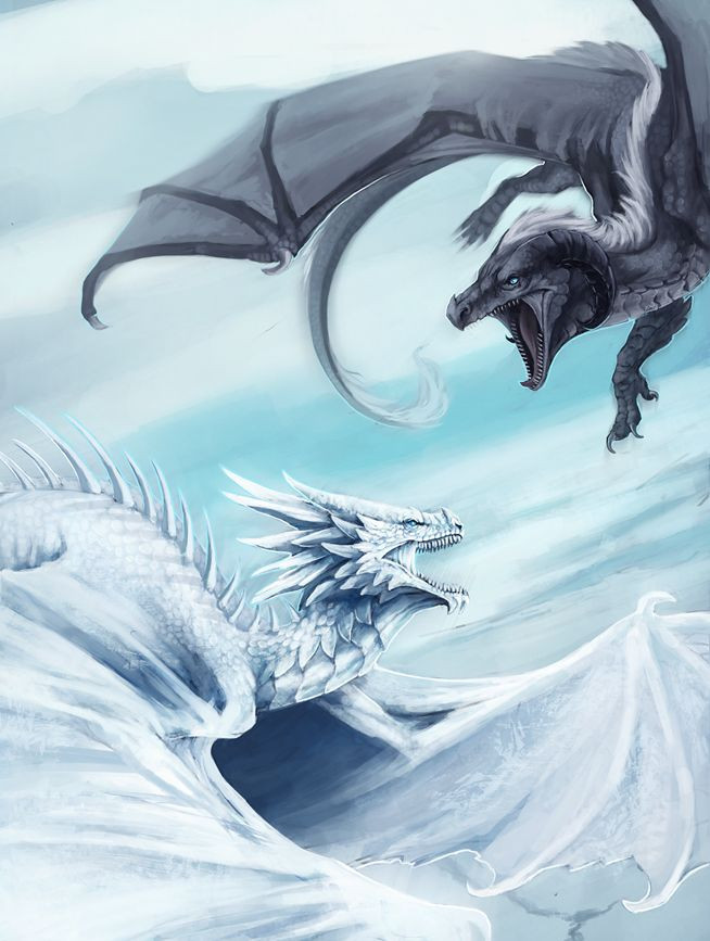 The Dragon turned and faced the ranger who started shaking in fear and dismay, all control over his body having fled when confronted with such a large creature. He attempted to flee but it ran after him, as a cat runs after a mouse. It casually slammed him into the wall of the hall and Siax felt his ribs groaning in protest. However before the Dragon could end the life of the ranger it was knocked back and up, a second Dragon, this one green having launched itself from a nearby roof and tackling Cryovain. This second dragon was smaller than him but he was already tired from a whole day's fighting. They both rose to the sky, scratching and clawing with a fury that left any onlookers awestruck.