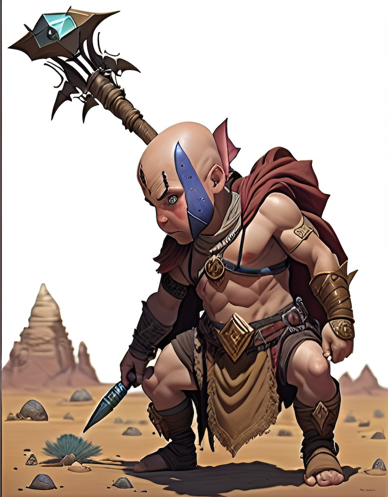 Short but extremely powerful, Athasian dwarves average 4 1/2 to 5 feet tall. Because of their massive musculature and wide frames, full-grown dwarves weigh in at a hefty 200 pounds or so. Cities of the dwarves were once as numerous as the caravan forts guarding the trade roads, but today not one exists. Likewise, no more than a handful of dwarf villages remain in the Tyr Region. Kled and the twin villages of North and South Ledopolus are the most prominent. The rest of the dwarf population lives in the city-states of the sorcerer-kings or among the slave tribes that wander the desert wastes.