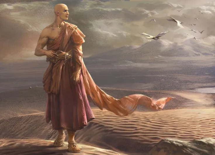 Es alto y delgado, con una ligera arrogancia en los labios, y viste un kimono de brillantes rojos y amarillos, como si el propio fuego estuviera grabado en la seda. Un tenue resplandor parece parpadear detrás de sus ojos cuando mira alrededor de la habitación.