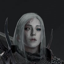 Старая темнокровная, облачена в нелепые, совершенно негодные для охотничьего дела доспехи. Зато устрашающие, смотри какие шипы! Одноглаза. Путешествует с Нирвой. Высокая, мощная, выше большинства мужчин.