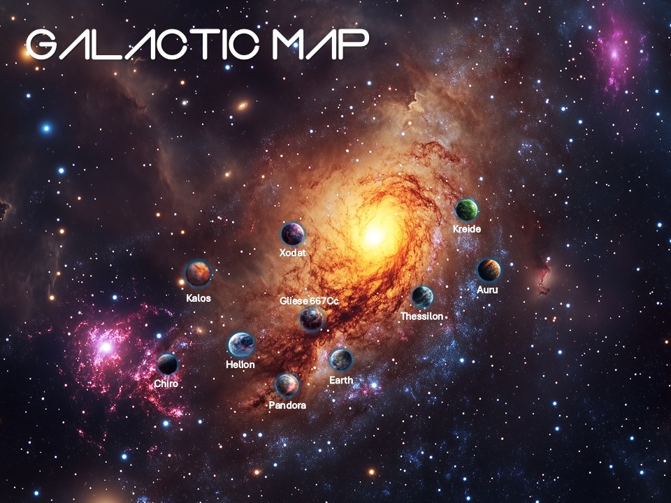 The vast galaxy is teeming with stars and countless exoplanets, each hosting diverse civilizations that contribute to the rich tapestry of interstellar society. Among the most prominent civilizations are Humans, Ceruleans, Oopons, Invorex, Sanguines, Silurians, Sobeks, and Unsclavs. Each of these cultures brings unique characteristics, technologies, and traditions to the galactic community, fostering both conflict and trade across the stars.