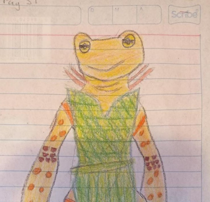 Desde que nació nunca conoció a su padre, solo a su madre (Sherlyn) quien la cuido desde que era un pequeño renacuajo, tuvo una infancia atípica, ya que después de su nacimiento, el pueblo Anura se empezó a ser "famoso" ya que son de los pocos pueblos que son acuicultores especialistas en lampreas, del mismo modo que son buenos barqueros.