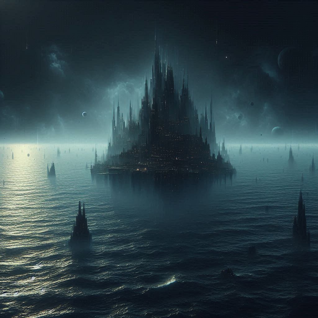 The Ring of Dread is an endless, dark sea known as the Sea of Desolation, whose waters are so cold that they freeze anything they touch almost instantly. The sea stretches infinitely in all directions, with no visible landmasses or horizons to provide a sense of direction or hope. The sky above is a perpetual night, devoid of stars or celestial bodies, cloaked in swirling mists and shadows that seem to reach down toward the sea like grasping hands.