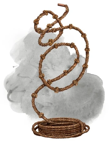 Activate; 1 Action; Interact; Frequency once per day; Effect You hold one end of the rope and point to a destination. The rope animates for 1 minute, moving 10 feet per round until it reaches the destination or runs out of length. The rope can move across any non-damaging horizontal or vertical surface, but it can't extend upward without a surface to support it. At any point while the rope is animated, you can use an Interact action to wiggle the rope, giving it one of the following commands: stop in place, fasten securely to the nearest available object, detach from an object, or knot or unknot itself.