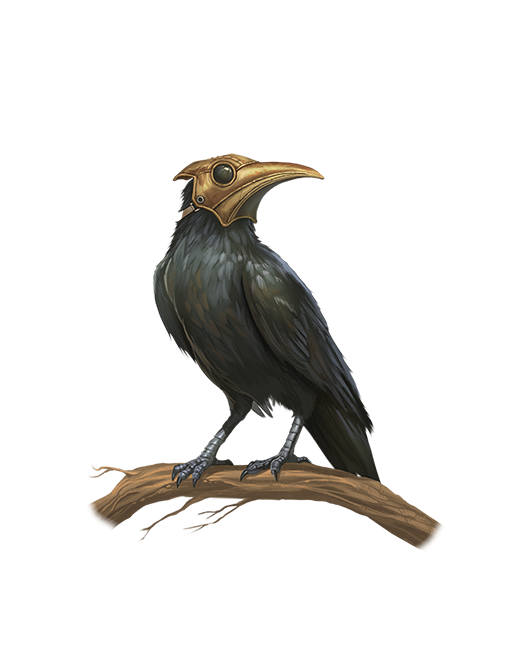 A nosoi resembles a whippoorwill, sparrow, or other small bird wearing a heavy leather plague doctor’s mask. They are the clerks, messengers, and scribes of the Boneyard, witnessing judgments, directing souls, and generally performing the administrative grunt work that keeps the Boneyard functioning. Most nosois are particularly chatty and eager to discuss how important they consider their individual assignments to be.