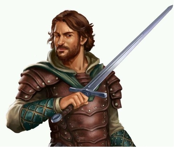 Der gutaussehende 21 jährige ist gekleidet in eine leichte Jagdkleidung und trägt ein Schwert an seiner Seite.