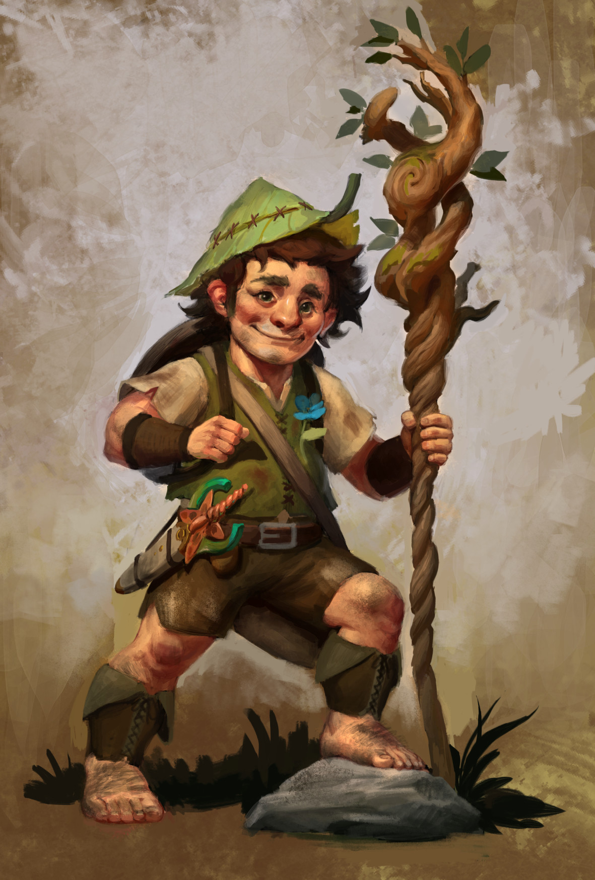 Lacie Needlewind was a druid of the Colosseaux Pines and was married to Alice Needlewind. He was a Halfling who had dark brown, curly hair, and wore green overalls that seemed to be woven from leaves and vines. He also usually had vines or small blossoming flowers down their left arm. He spoke with a slight southern accent.