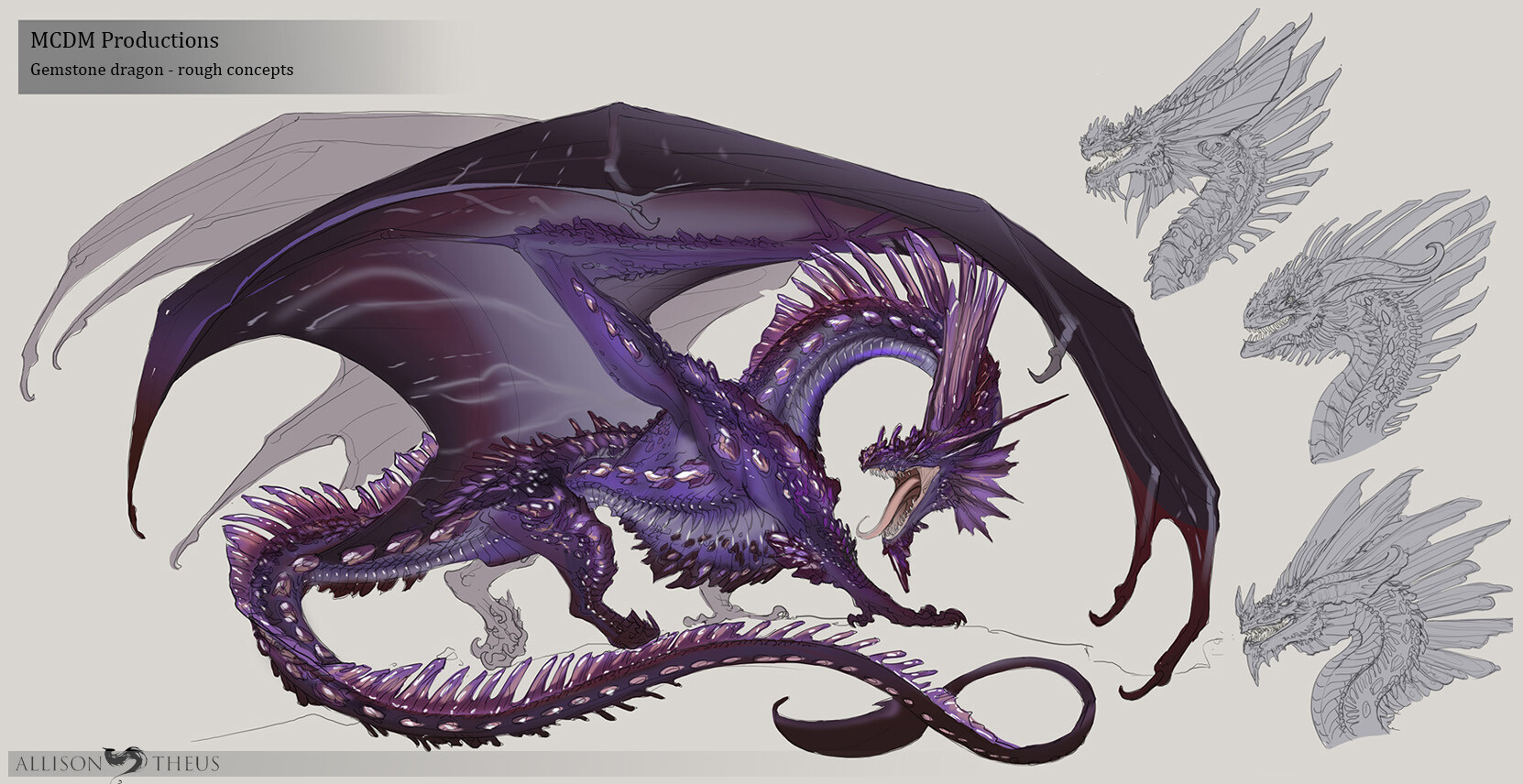 Morgo the Maleficent was an Ancient Amethyst Dragon who recently emerged from Underground and took over Castle Darkstone. She was a massive purple gem dragon with a long neck and tail, and jagged shards of amethyst running down her spine. She glows with a dark black-purple energy just beneath her surface. She recently wore a necklace of with a silver fractal pattern - her acquired Solithar Shard.