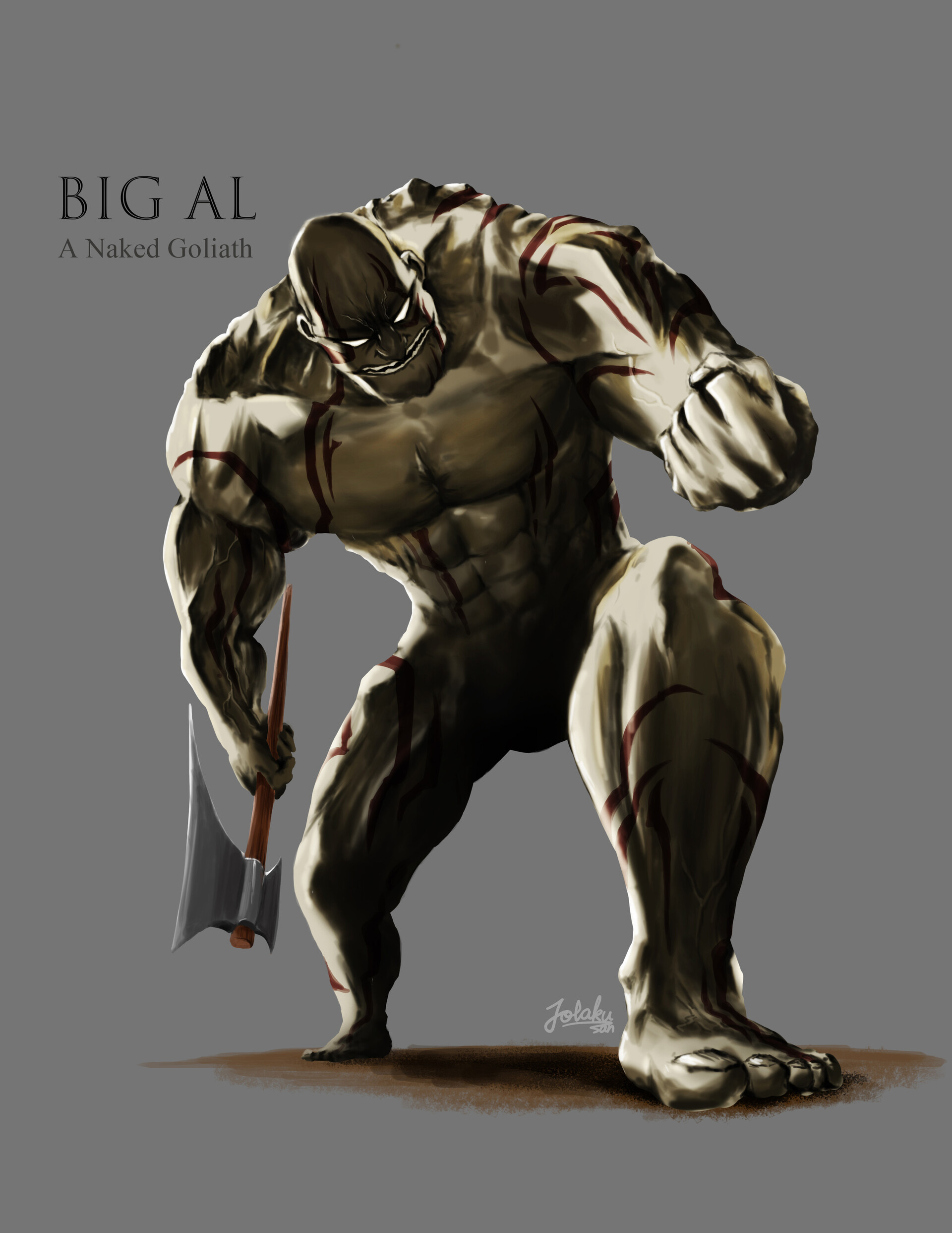 Over 6' tall, built like Kingpin. Strained, grating, very aggressive voice. Cracks any material he grips