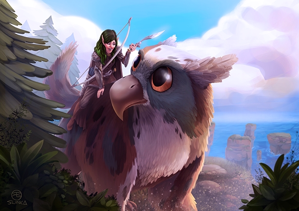 Elven woman who tends to her lot in Mazraea with domesticated Owlbears.