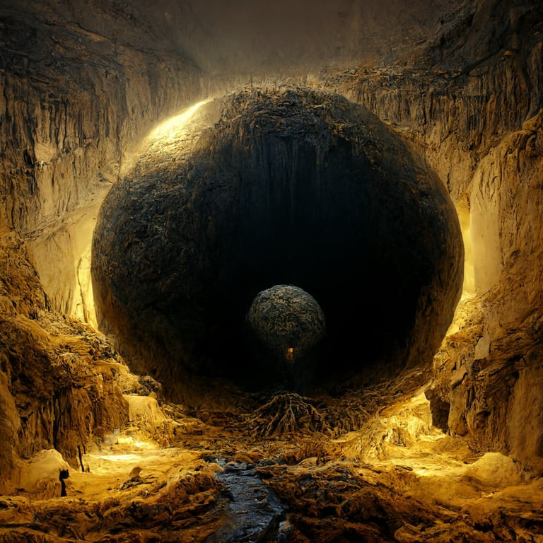 sitting int he center of a spherical area in the cave system. This room