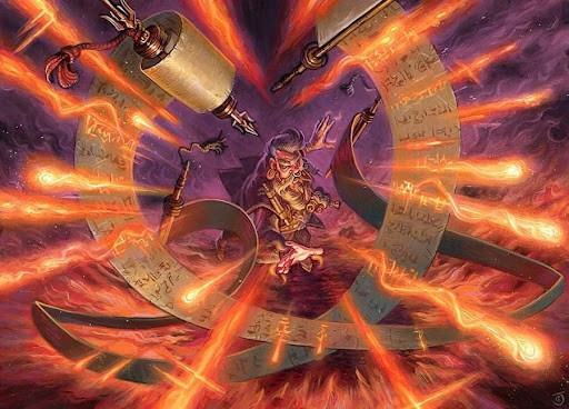 This compendium took many forms over the centuries: an ever-unfurling scroll, a tome of limitless pages, an orb of rotating sigils and writings. The form always fit the will of the wielder, as did the information within. The Infinite Scroll acted as a documentation of all recorded history and a progression of magical research, collected and added to from archmages of every age.