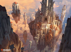Capital city of Seraphar, a floating temple-city above the great celestial mountain plane. Word count: 13