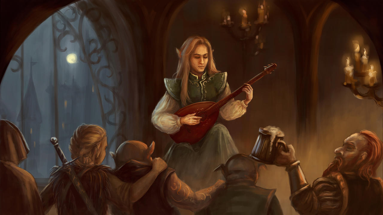 Bard-centric tavern in Sedesend, in which everyone is constantly performing and inspiring one another. Word count: 14