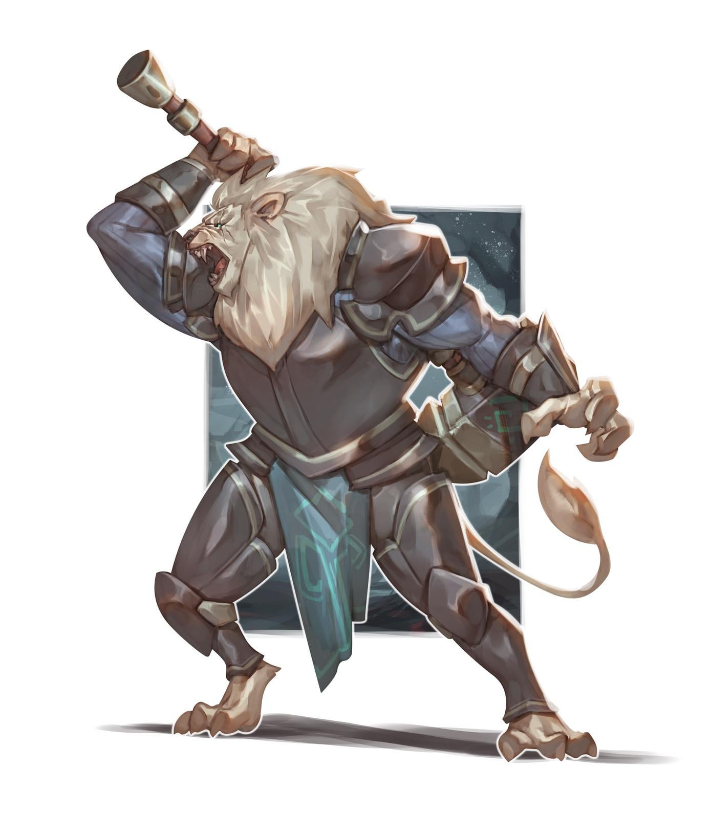 Krail Stelemane was a Leonin soldier of the Goldguard. He had grey-white fur, and a heavy, built frame under bottle-worn and unadorned steel plate armor. His white mane flowed down his back and out the tops of his armor. He wielded a narrow glaive, effective to use through the prison bars.