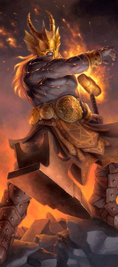 Vornog was a general of the Fire Giants of the southern Isle of Reus. He wore a massive, brass helmet that came down over his eyes and nose, and wore a heavily padded kilt laden with belts and tools.