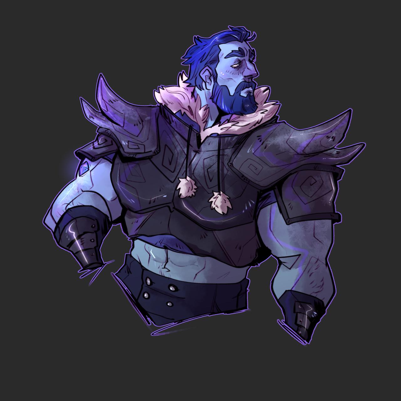 Kalter was a short (12 foot tall) Frost Giant who took up residence in Garyn after feeling pushed out by his brethren. He wore leather armor layers all banded and connected to one another to cover his comparatively large body, and wielded a jagged broken greatsword which resembled a flat icicle. His voice was gruff and serious but his language revealed he was meek and apologetic.