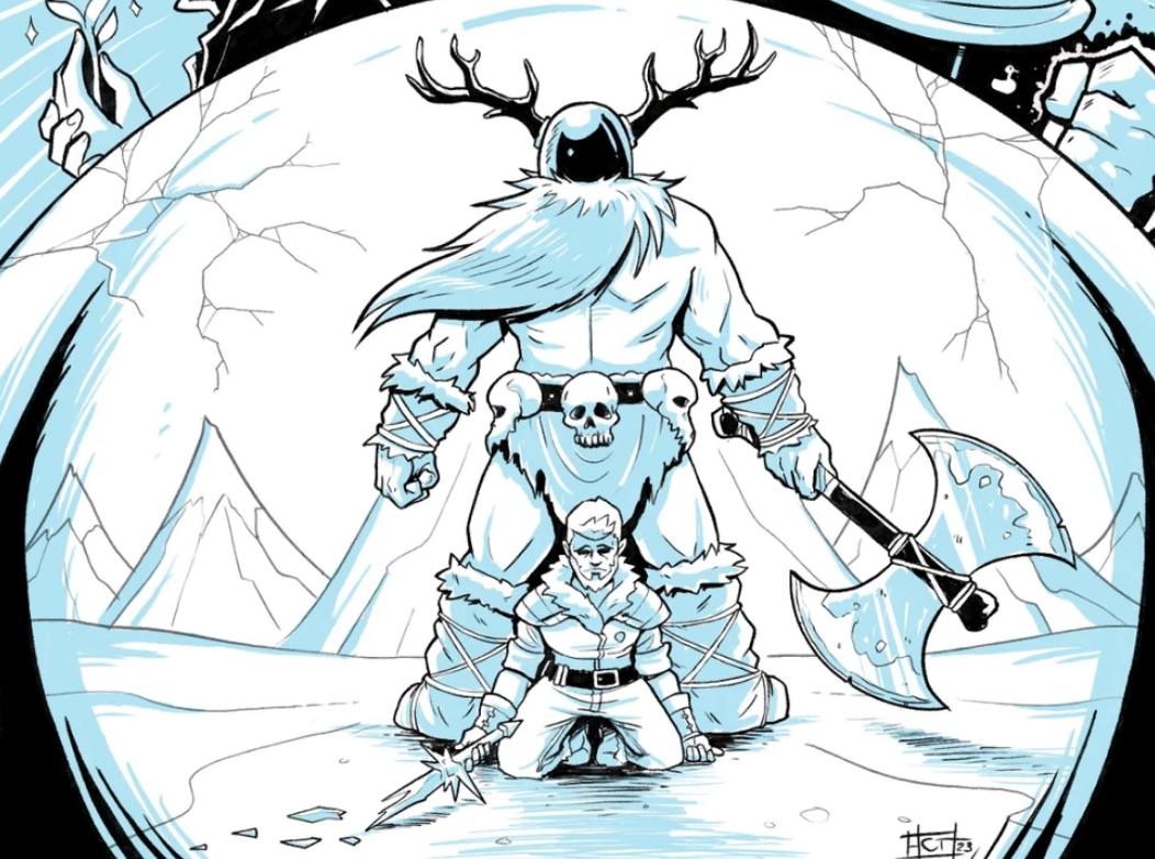 Gaowain was a mighty Frost Giant who stood at 20 feet tall. He was the older twin of Kalter and presided over Gletsden and its Frost Giants as their leader. He wore a metal helm with massive elk antlers affixed to them, and wielded an enormous greataxe which had blood caked on and frozen over it with many layers.